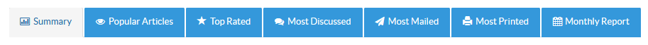 When you click on any of the subsections of ’Statistics’, corresponding page with tabs of different statistics reports will display. For example, if you click on Articles, the page will display different tabs like summary, popular articles, top rated etc. Similarly, all other sub-sections will display tabs of their statistics reports which are explained in different articles.