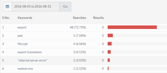 - You can select a date range from the date drop-down available above the table to view failed searches of a specified time.