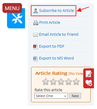 - Click on Menu button at the right side of article page and select "Subscribe to Article" option. This menu is available only if Theme1 is selected under Article Page Theme available under Feature Settings.