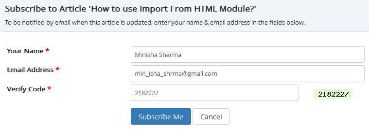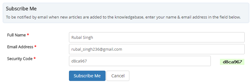 - Fill in the form and click on "Subscribe Me" button to subscribe to the knowledge base.