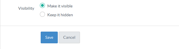 - You can set the visibility status through "Visibility" option. "Make it visible" will display the glossary term in public area. "Keep it hidden" will not display the glossary term in the front end.