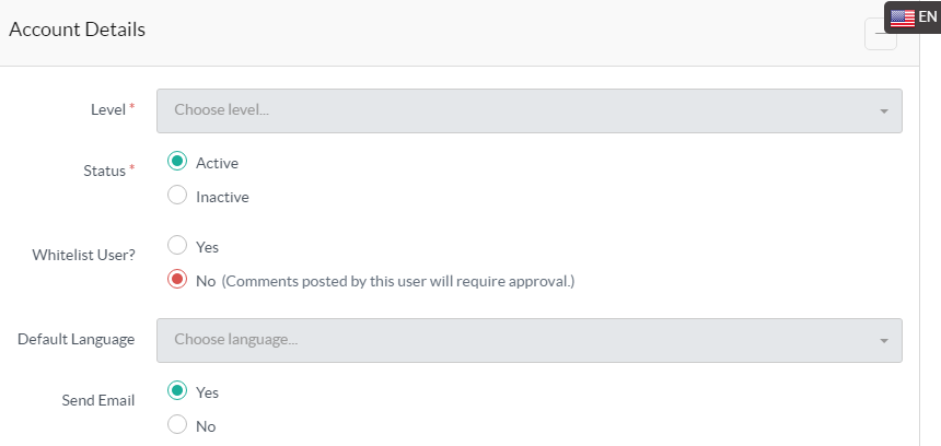 - Check "Yes" radio option if you want to make user as "whitelisted" (comments posted by whitelisted users doesn’t require superuser moderation). Otherwise, check "No" option.