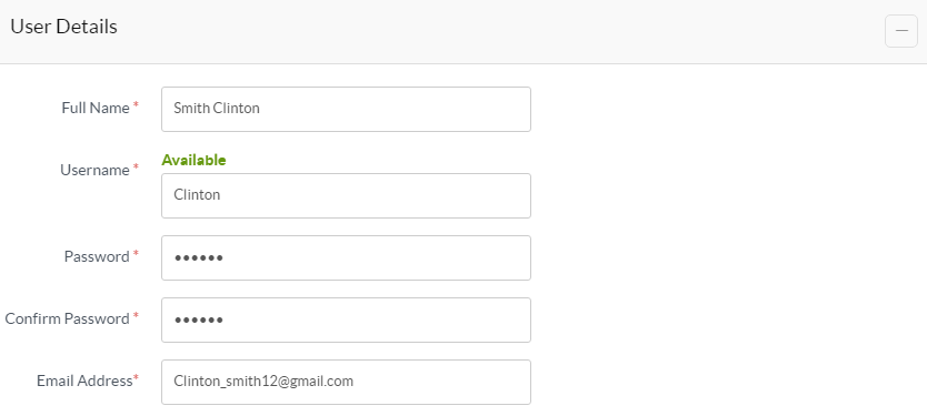 - If "Yes" is checked in "Send Email" field, the user will receive a notification email once the account is created, whereas, if "No" is checked, the software will not send any account creation notification.