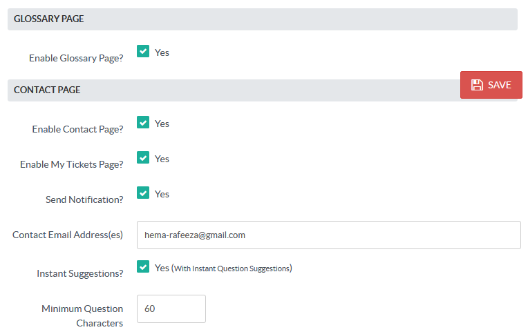 - Enable Contact Page? : If the option is marked as Yes, the Ask a Question link will be displayed in the header of the knowledge base and allows KB users to post their questions.
