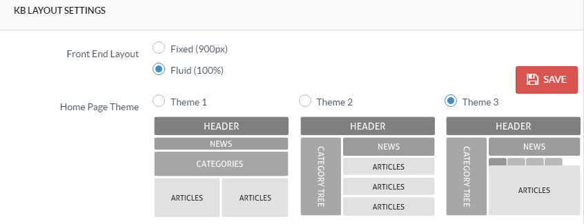 - Home Page Theme: The knowledge base software provides three themes based on how the knowledge base home page will display category tree, news, and article lists. Choose the one as per your preference.