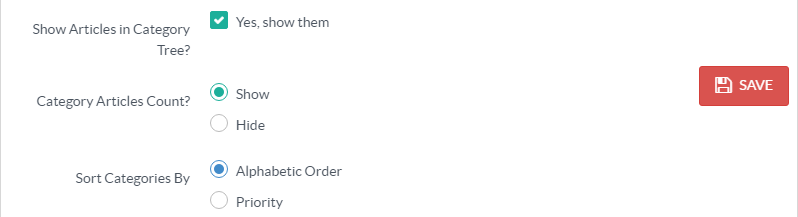 - Category Articles Count: If the Show option is chosen, it will display a count of the total published articles available under the category. It is recommended to disable this setting for a knowledge base having a huge number of articles.