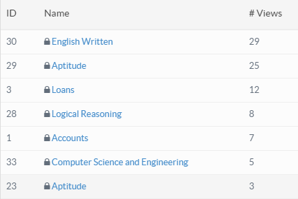 - # Views: This column displays the total count of hits corresponding to the category in descending order. The most popular category is listed on the top and the least popular at the bottom.