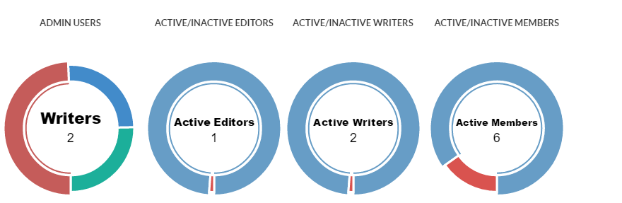 - Active Writers - This sub-field displays total number of active writers who can log in to the admin control panel.