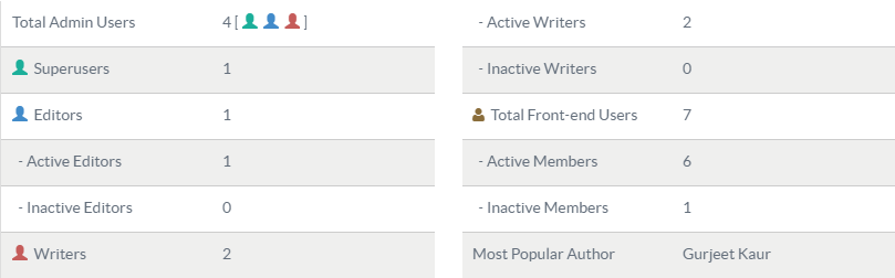 - Inactive Editors - This sub-field displays the total number of inactive editors who can not access admin control panel.