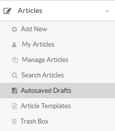 Expand "Articles" section in the left navigation bar and then click on "Autosaved Drafts" link to open autosaved Drafts page.