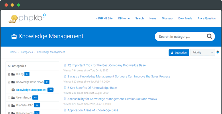 Support teams know the most about customer issues and the best way to solve them. That’s why a knowledge base is a crucial part of any company’s customer experience strategy. It organizes frequently asked questions, product details, policies, and more, and empowers customers and agents with that information. PHPKB is a smart knowledge base software. It’s built to help you and your team continuously improve your content, keep it up to date, and serve it to your customers. Optimized programming code allows users to achieve the best performance and build a knowledge base that can easily handle over 10,000 articles.